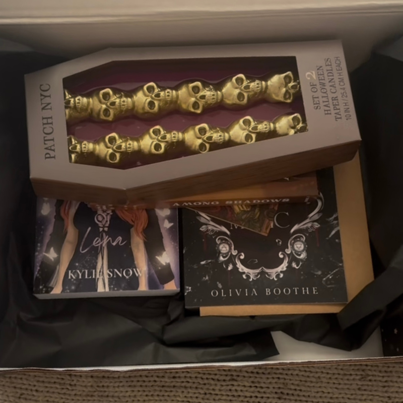 To complement the darkly romantic reads, the July box featured Patch NYC’s Gold Skull Taper Candles, elegantly housed in a coffin-shaped box, a perfect gothic accent for any book nook. A coordinating bookmark completed the experience, inviting readers to linger in each story’s world a little longer. Every detail, from candlelight to custom art, was crafted to celebrate the pleasure of collecting and connecting through story.